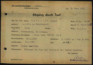 Als im Lager Typhus ausbrach, im Winter von 1944, meldete sich der Diener Gottes zum freiwilligen Krankendienst, um ihnen den Trost des Glaubens zu spenden, obwohl er sich der tödlichen Gefahr bewusst war. Nachdem er ein einzigartiges Zeugnis gegeben hatte vom Sieg der Liebe über alle Grausamkeiten und Unmenschlichkeiten, starb er in Dachau als Opfer der Seuche am 2. März, 1945, gerade erst 34 Jahre alt.